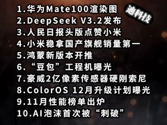 1.华为Mate100渲染图2.DeepSeek V3.2发布3.人民日报头版点赞小米4.小米稳拿国产旗舰销量第一5.鸿蒙新版本开推6.“豆包”工程机曝光7.豪威2亿像素传感器硬刚索尼8.ColorOS 1[详情]