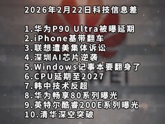 1.华为P90 Ultra被曝延期2.iPhone基带翻车3.联想遭美集体诉讼4.深圳AI芯片逆袭5.Windows记事本要翻身了6.CPU延期至20277.韩中技术反超8.华为畅享80系列曝光9.英特尔酷睿200[详情]